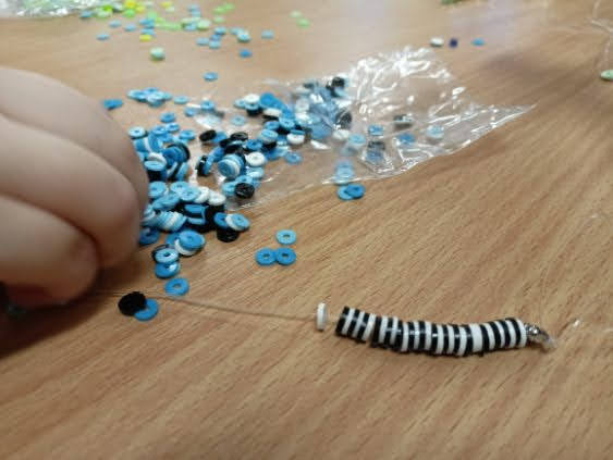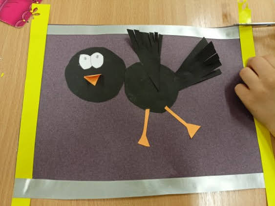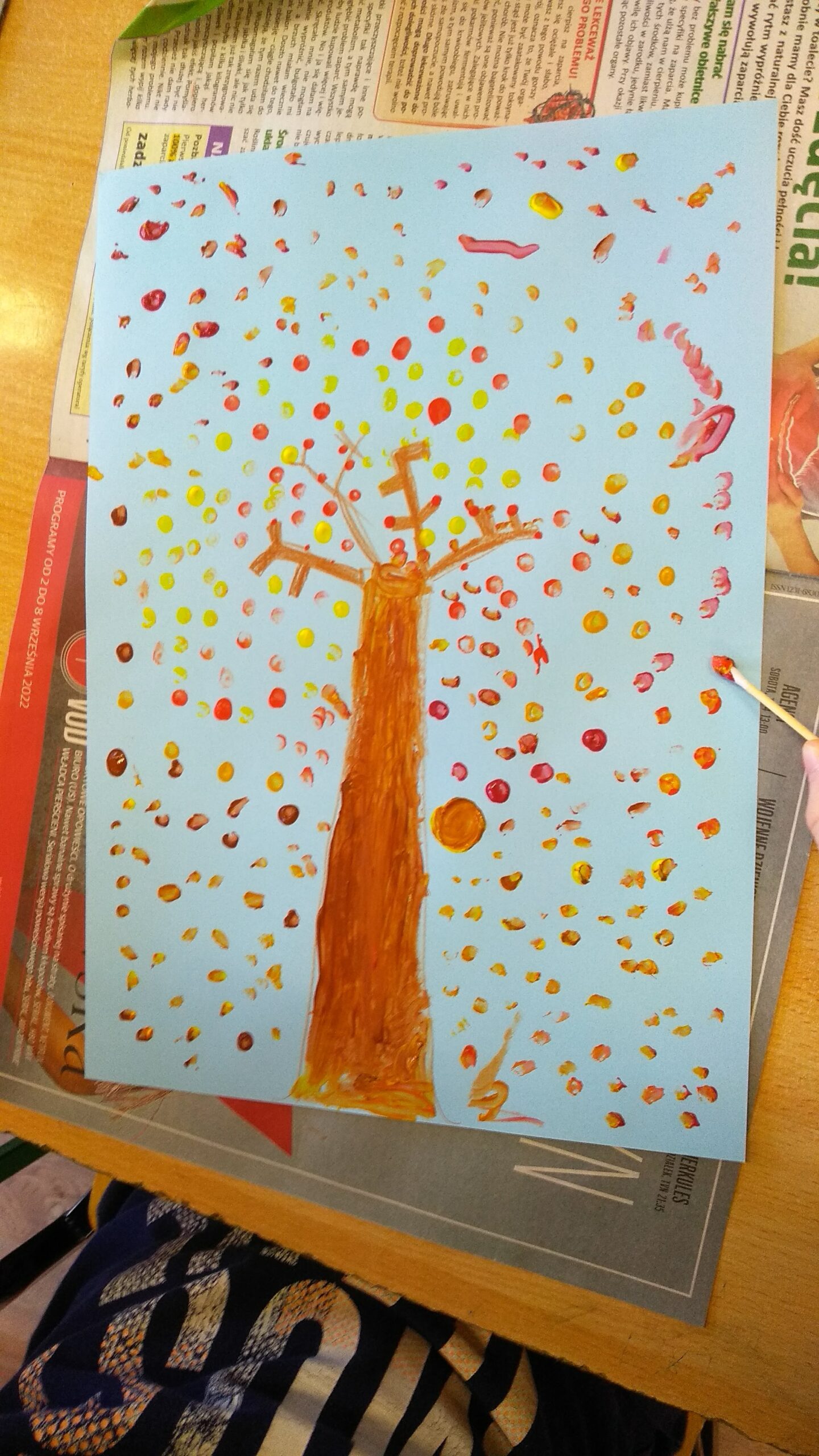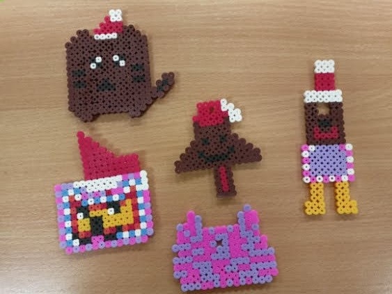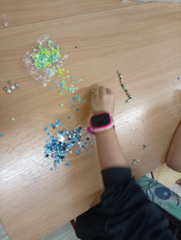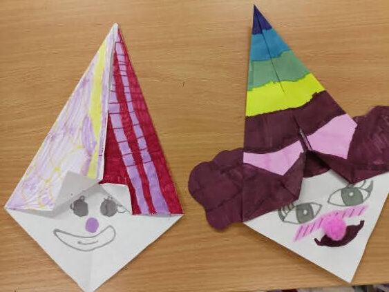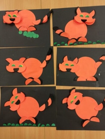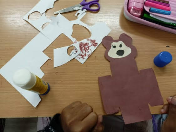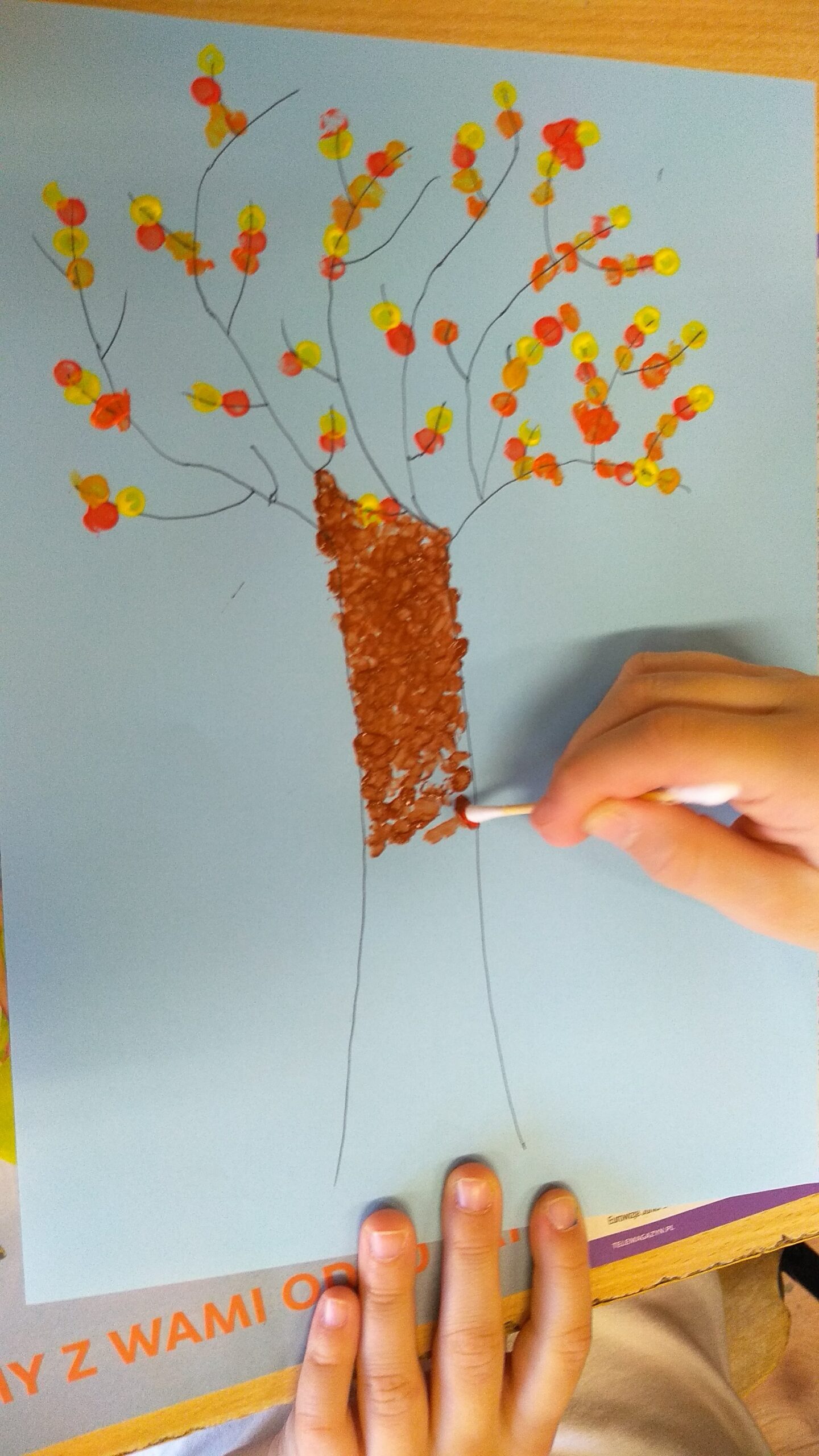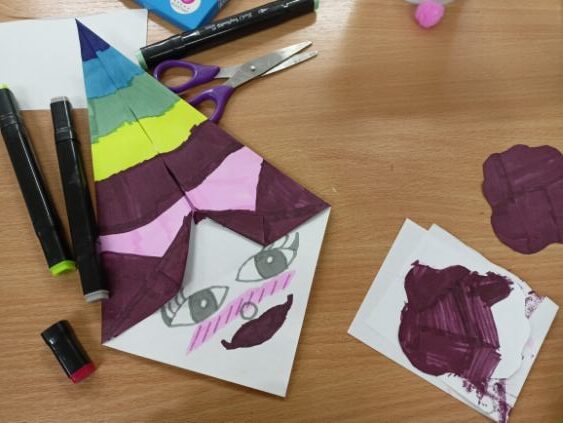 Prezentowane prace powstały podczas zajęć: „Kreatywne popołudnia” – tym razem były to prasowanki z koralików, „Sztuczki” – jesienne drzewa malowane za pomocą patyczków higienicznych oraz kolorowe parasolki. Natomiast misie i kruki to dzieła uczestników „Origami i inne zabawy z papierem”.