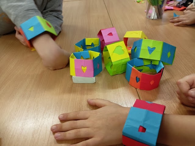 Bałwanki wykonane przez Zręczne Rączki 🙂 oraz bransoletki – dzieła uczestników zajęć origami.