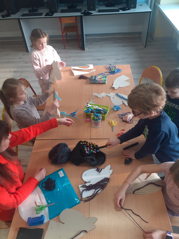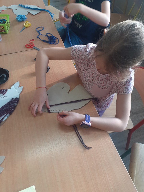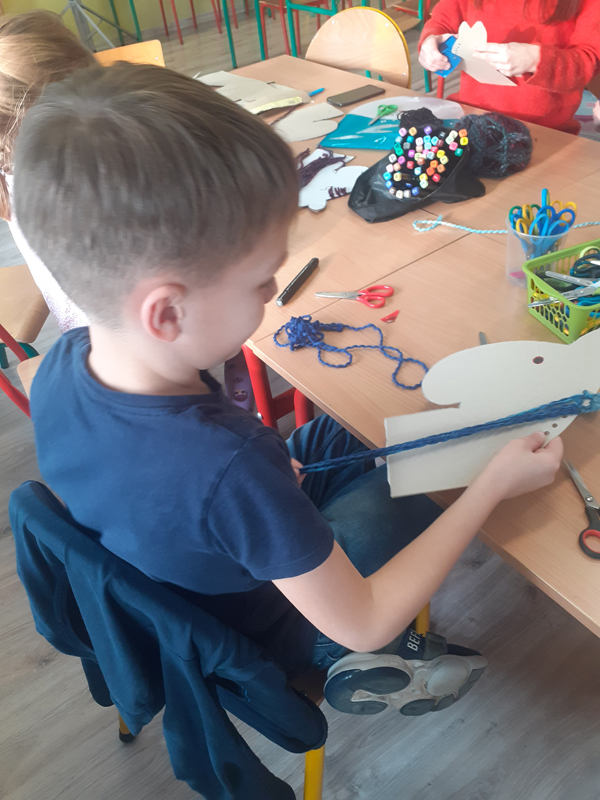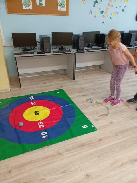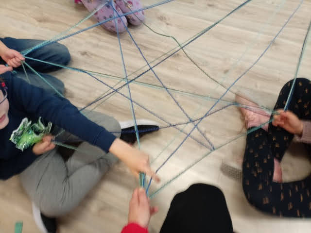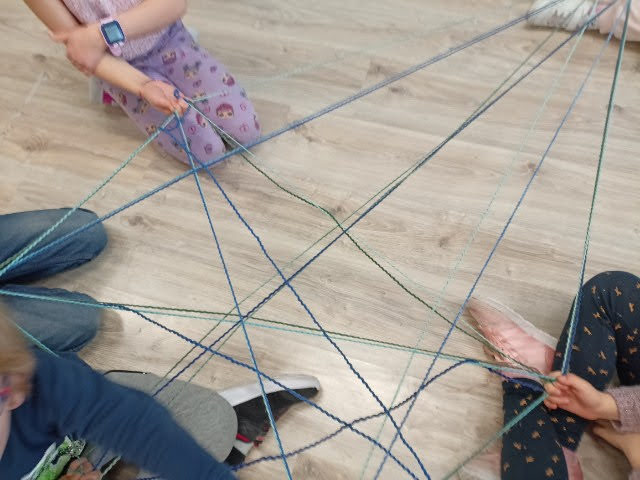 „Kreatywne popołudnia” Na pierwszych zajęciach w roli głównej włóczka:) Rzuty do celu krążkami z włóczki, włóczkowa pajęczyna i konie z włóczkową grzywą.