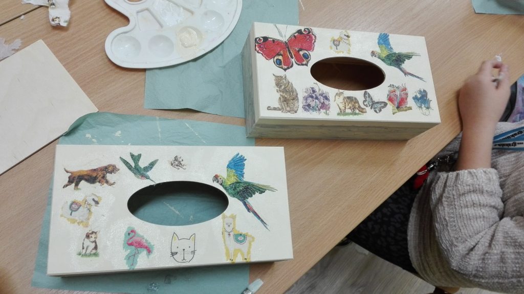 Zajęcia z decoupage odbywają się we wtorki od 15:00 do 15:45 w sali 9.